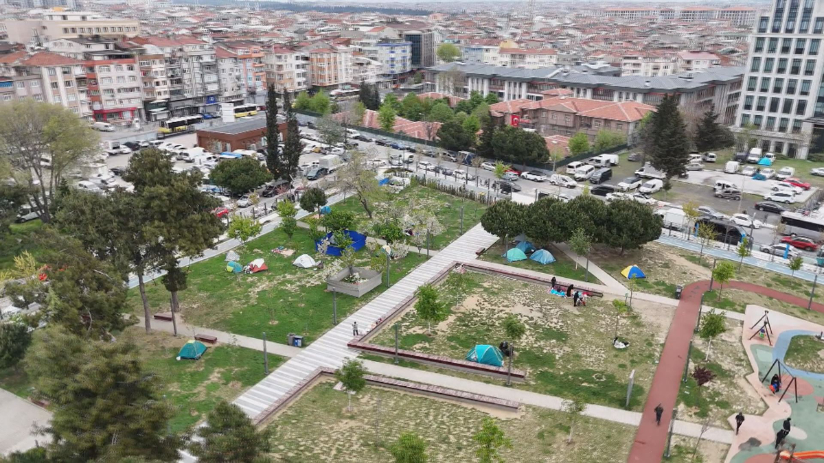 Megakentte yaşanan 6,2 büyüklüğündeki deprem sonrası tedirgin olan bazı vatandaşlar, geceyi açık alanlarda geçirmek üzere Esenyurt'taki Dr. Mimar Kadir Topbaş Parkı'na geldi.